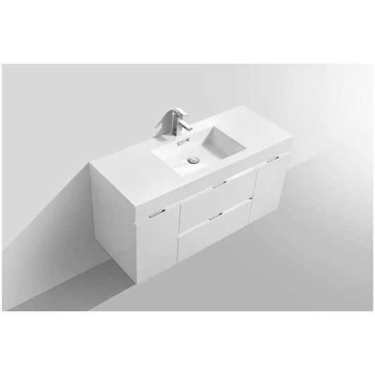 Bliss 48" Wall Mount Modern Bathroom Vanity, High Gloss White