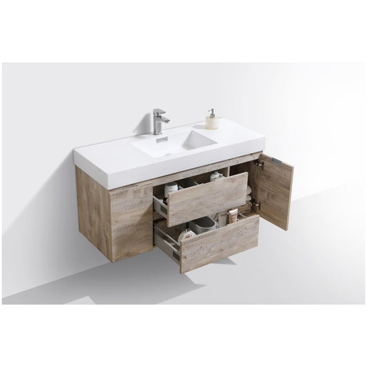 Bliss 48" Wall Mount Modern Bathroom Vanity, Nature Wood