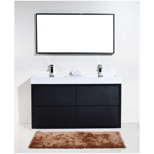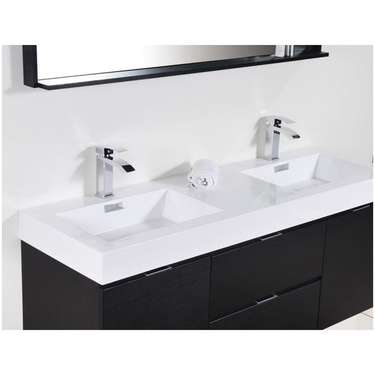 Bliss 60" Double Sink Black Wall Mount Modern Bathroom Vanity