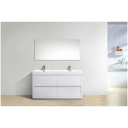 Bliss 60" Double Sink High Gloss White Free Standing Modern Bathroom Vanity