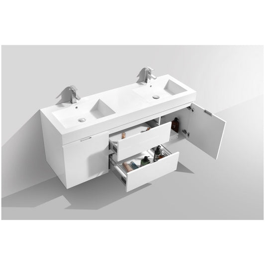 Bliss 60" Double Sink High Gloss White Wall Mount Modern Bathroom Vanity