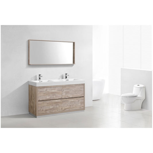 Bliss 60" Double Sink Nature Wood Free Standing Modern Bathroom Vanity