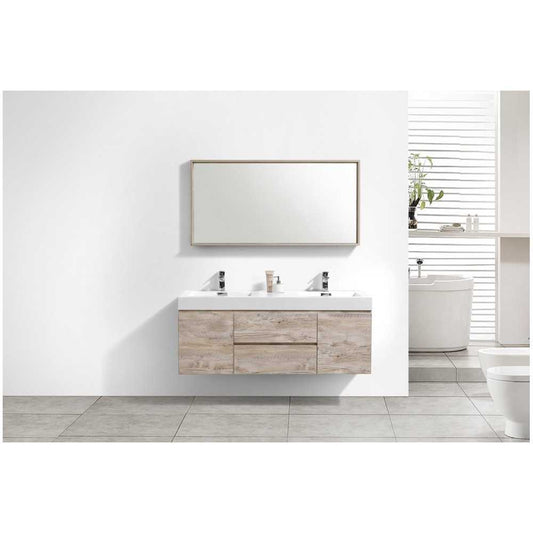Bliss 60" Double Sink Nature Wood Wall Mount Modern Bathroom Vanity