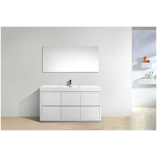 Bliss 60" Single Sink High Gloss White Free Standing Modern Bathroom Vanity