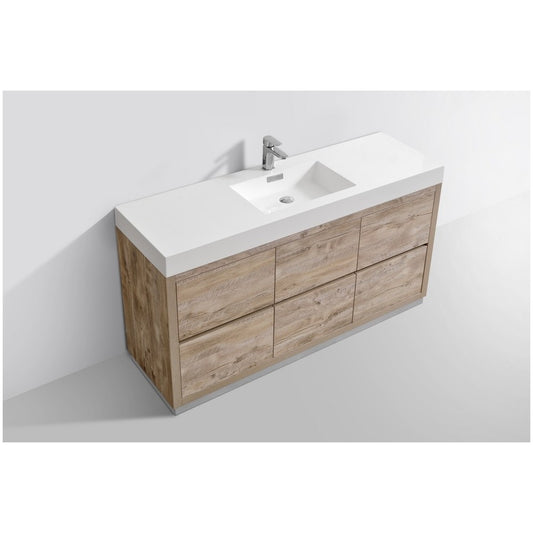 Bliss 60" Single Sink Nature Wood Free Standing Modern Bathroom Vanity