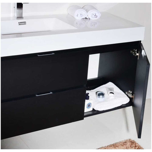 Bliss 60" Single Sink Wall Mount Modern Bathroom Vanity, Black