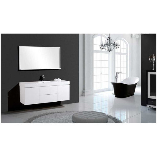 Bliss 60" Single Sink Wall Mount Modern Bathroom Vanity, High Gloss White