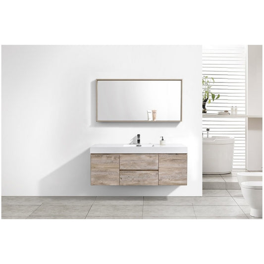Bliss 60" Single Sink Wall Mount Modern Bathroom Vanity, Nature Wood