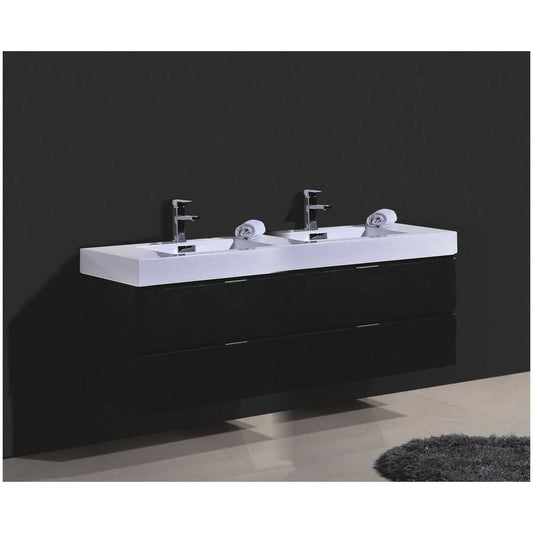 Bliss 72" Double Sink Black Wall Mount Modern Bathroom Vanity