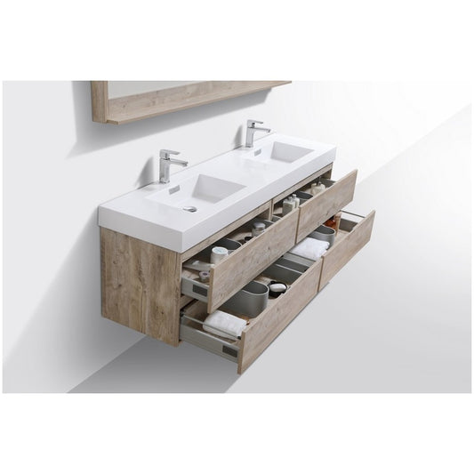 Bliss 72" Double Sink Nature Wood Wall Mount Modern Bathroom Vanity