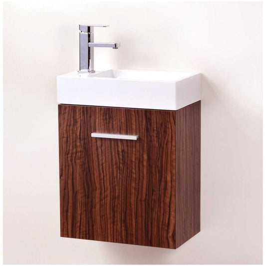 Bliss 18" Wall Mount Modern Bathroom Vanity, Walnut