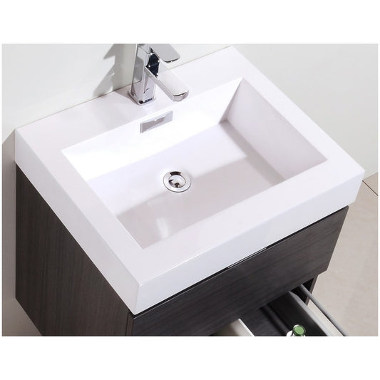 Bliss 24" High Gloss Gray Oak Wall Mount Modern Bathroom Vanity