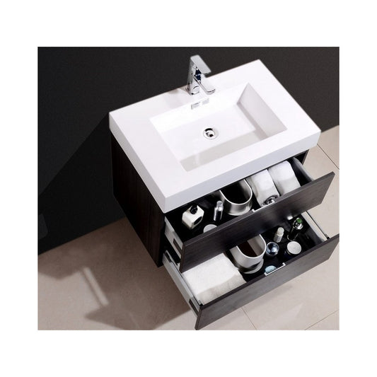 Bliss 30" Gray Oak Wall Mount Modern Bathroom Vanity