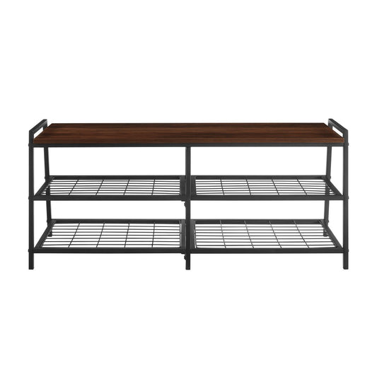 Arlo 42" Industrial Metal and Wood Entry Bench with Shoe Rack - Dark Walnut