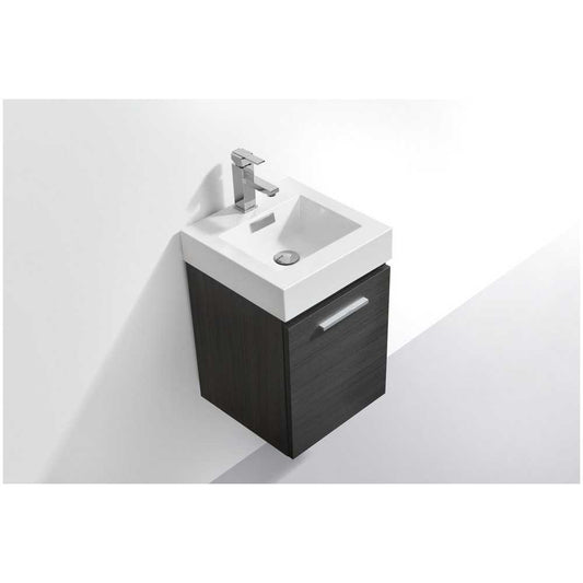 Bliss 16" High Gloss Gray Oak Wall Mount Modern Bathroom Vanity