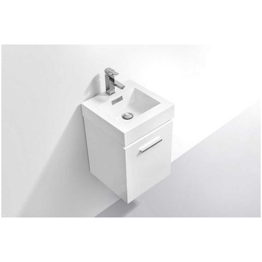 Bliss 16" High Gloss White Wall Mount Modern Bathroom Vanity