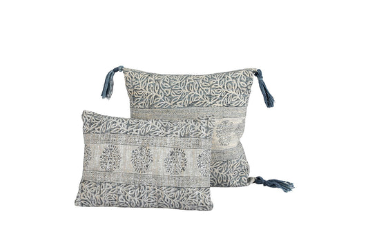 Cushion Cotton DEEPA Blue Metallic Print 14x20"