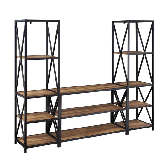 3-Piece Rustic Industrial Bookcase Set - Rustic Oak