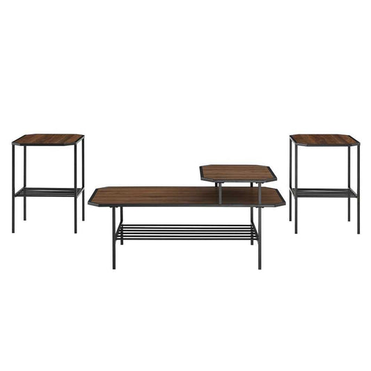 3 Piece Tiered Mixed Material Accent Table Set - Dark Walnut