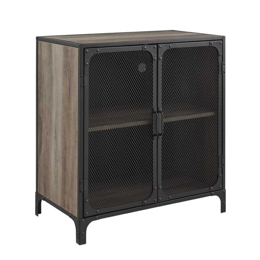 30" Industrial Mesh Metal Door Accent Cabinet - Gray Wash