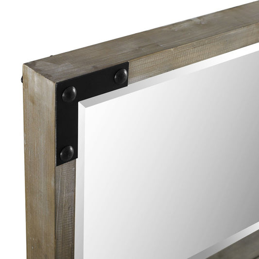 32" Rectangle Notched Corner Metal Framed Mirror - Antique Brass