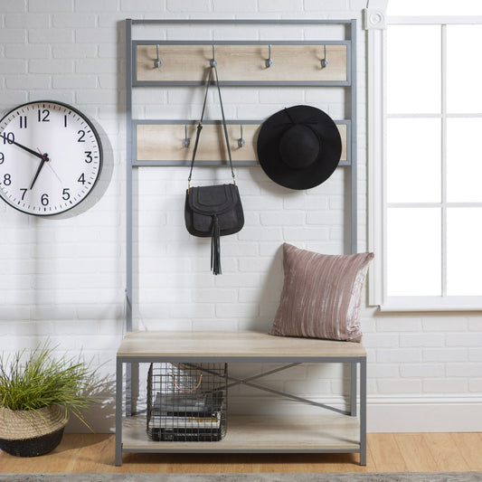46" Faux Wrap Leg Modern Industrial Entry Table - Gray Wash