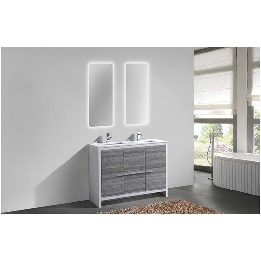 48" Double Sink Ash Gray Modern Bathroom Vanity With White Quartz Counter-Top