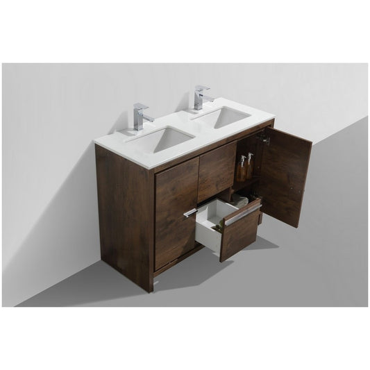 48" Double Sink Rose Wood Modern Bathroom Vanity With White Quartz Counter-Top