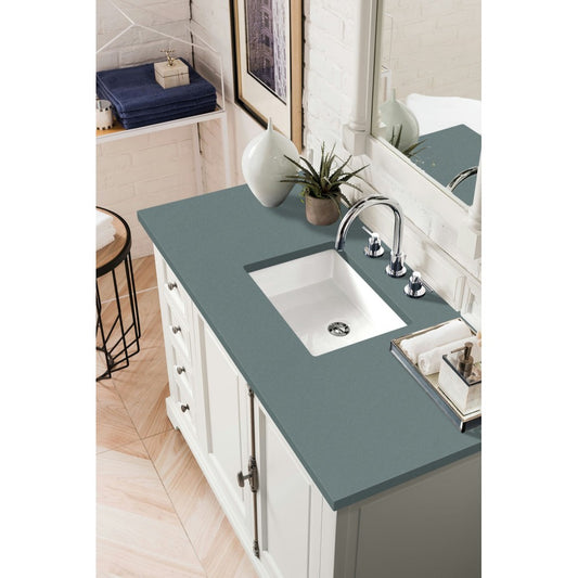 Providence 48" Single Vanity Cabinet, Bright White, w/ 3 CM Gray Expo Quartz Top