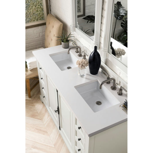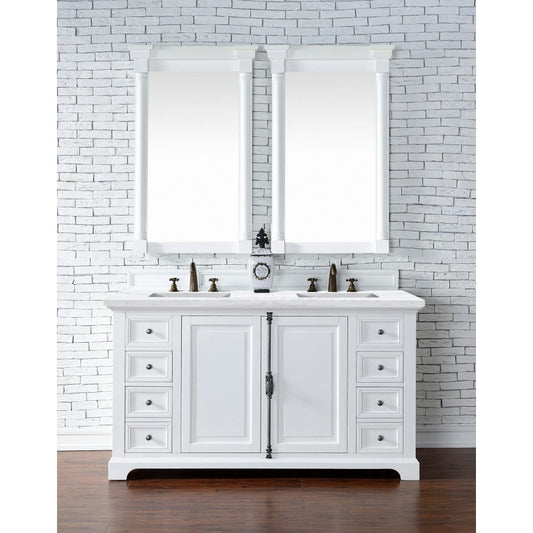 Providence 60" Double Vanity, Bright White, w/ 3 CM Classic White Quartz Top