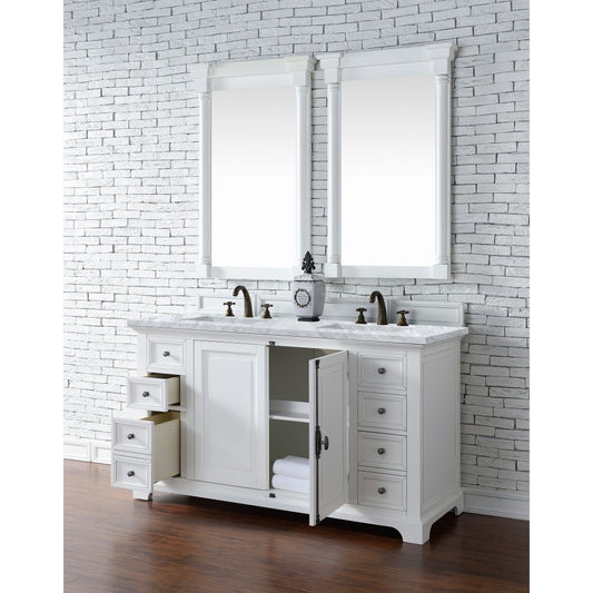 Providence 60" Bright White Double Vanity w/ 3 CM Carrara Marble Top