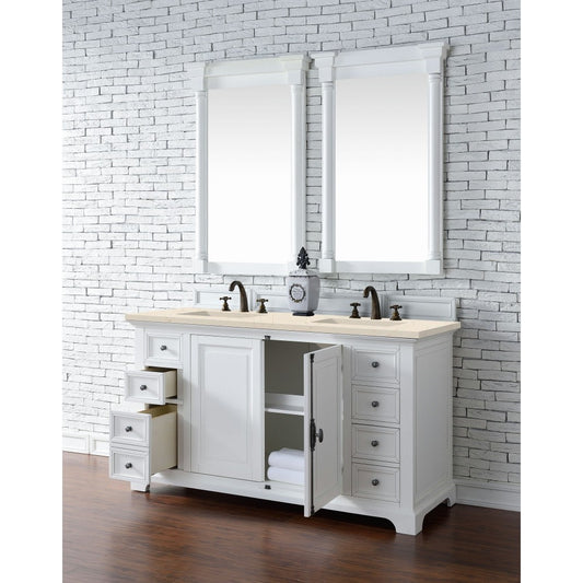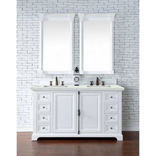 Providence 60" Double Vanity, Bright White, w/ 3 CM Eternal Marfil Quartz Top