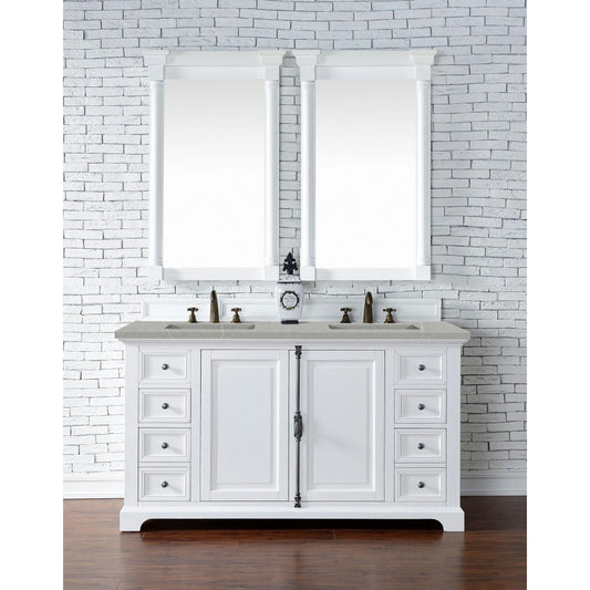 Providence 60" Double Vanity, Bright White, w/ 3 CM Eternal Serena Quartz Top
