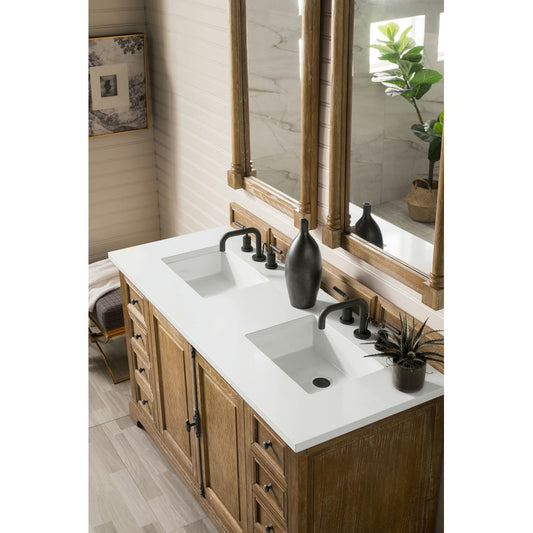 Providence 60" Double Vanity, Driftwood, w/ 3 CM Classic White Quartz Top