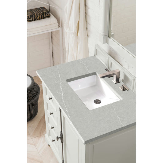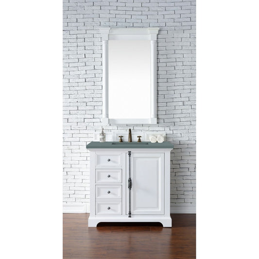 Providence 36" Single Vanity Cabinet, Bright White, w/ 3 CM Gray Expo Quartz Top
