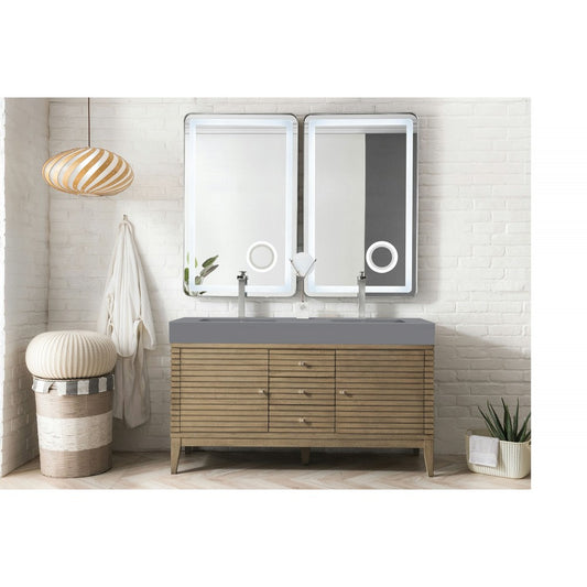 Linear 59" Double Vanity Whitewashed Walnut w/ Dusk Gray Glossy Composite Top