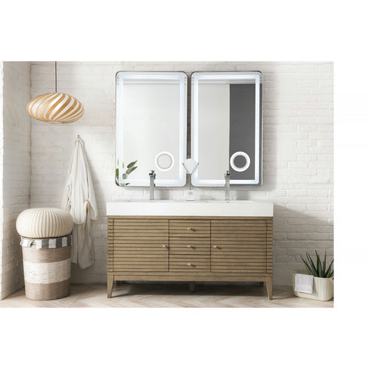 Linear 59" Double Vanity Whitewashed Walnut w/ Glossy White Composite Top