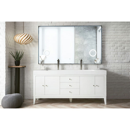 Linear 72" Double Vanity, Glossy White w/ Glossy White Composite Top