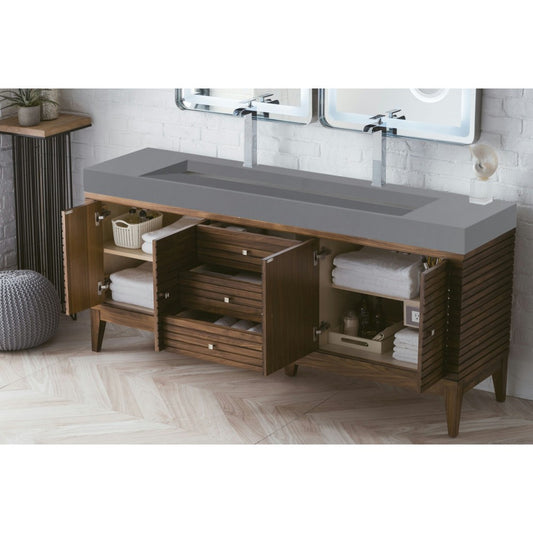 Linear 72" Double Vanity, Mid Century Walnut w/ Dusk Gray Glossy Composite Top