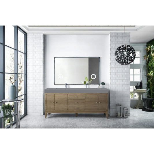 Linear 72" Double Vanity, Whitewashed Walnut w/ Dusk Gray Glossy Composite Top