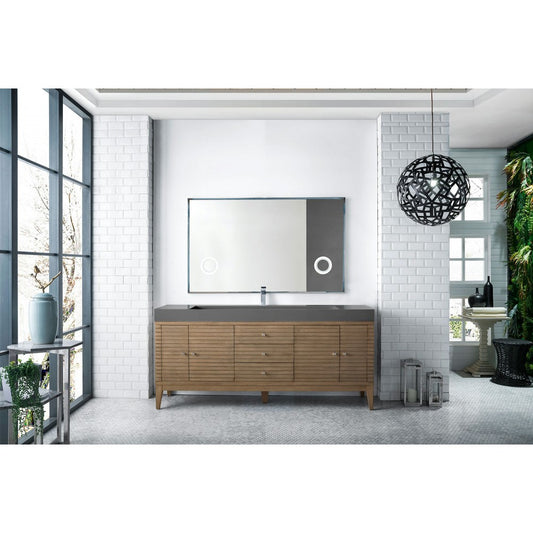 Linear 72" Single Vanity Whitewashed Walnut w/ Dusk Gray Glossy Composite Top