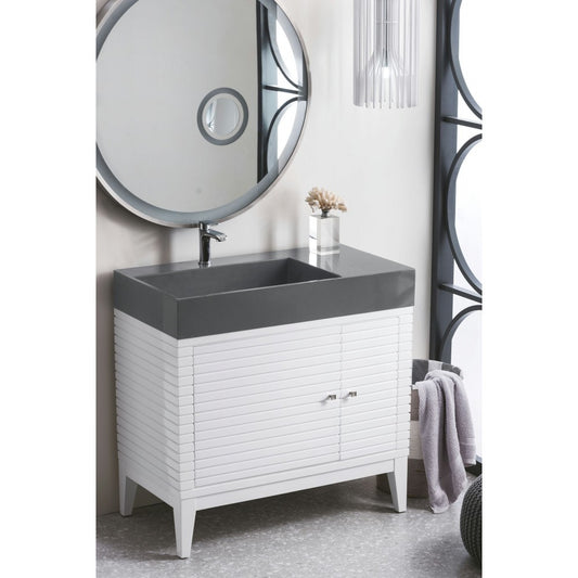 Linear 36" Single Vanity, Glossy White w/ Dusk Gray Glossy Composite Top