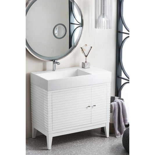 Linear 36" Single Vanity, Glossy White w/ Glossy White Composite Top