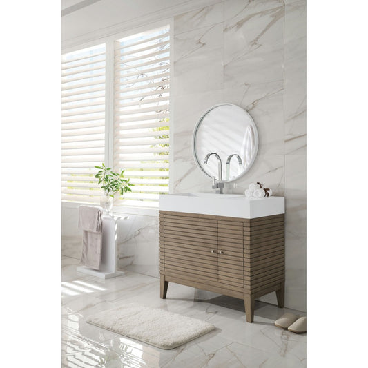 Linear 36" Single Vanity Whitewashed Walnut w/ Glossy White Composite Top