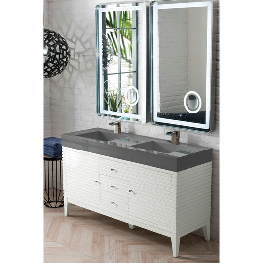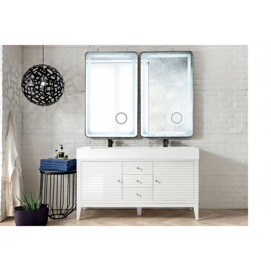 Linear 59" Double Vanity, Glossy White w/ Glossy White Composite Top
