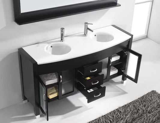 Ava 63" Double Bath Vanity in Espresso with White Engineered Stone Top and Round Sinks