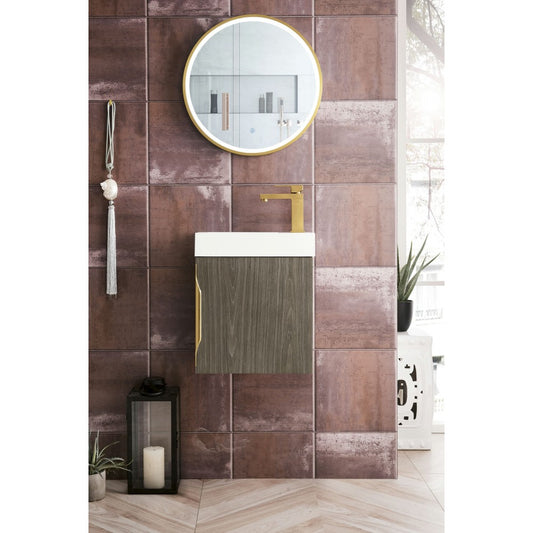 Columbia 24" Single Vanity, Ash Gray, Radiant Gold w/ White Glossy Composite Top