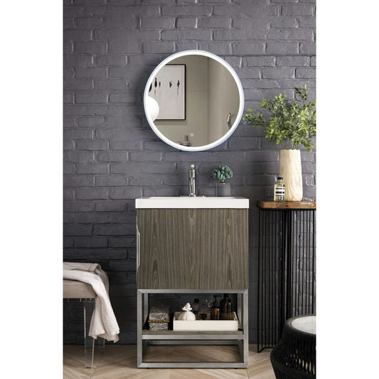 Columbia 24" Single Vanity Ash Gray Brushed Nickel w/ White Glossy Composite Top