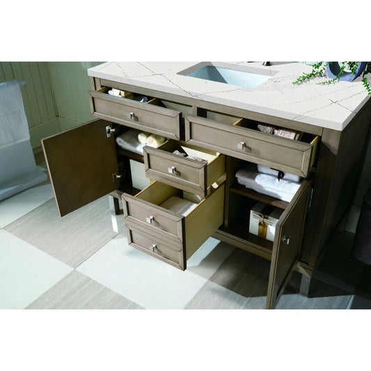 Chicago 48" Single Vanity, Whitewashed Walnut w/ 3 CM Eternal Serena Quartz Top