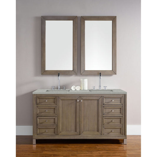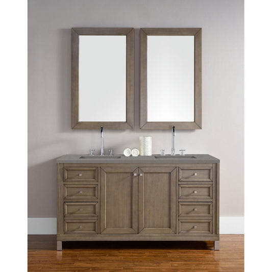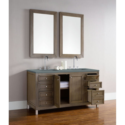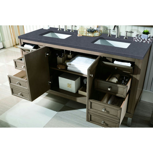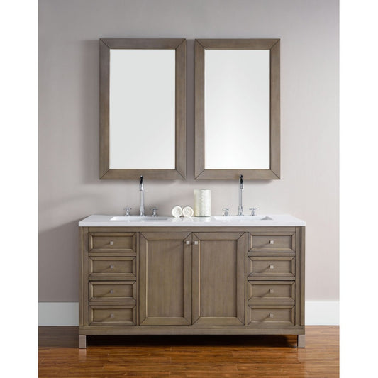 Chicago 60" Double Vanity, Whitewashed Walnut w/ 3 CM Gray Expo Quartz Top